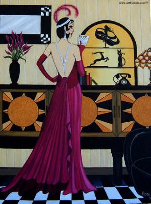 This week we have Rosie Harper as our Artist of the week. Rosie is a published, professional British artist, now living and working in beautiful New Zealand.She says: "I have been very fortunate in my artistic career and bless every day that I can pick up my brushes and create beautiful things in a sometimes ugly world. My work was published in Society Magazine in USA in 2005 on 3 occasions with my art as their front cover. I have several private collectors around the world with some of them owning up to 10 pieces. I work in a mainly Art Deco style with some Art Nouveau and Surrealism mixed in for good measure and I tend to go for bright and colourful with lots of detail rather than dark and sombre. Most of my pieces are large and are meant to own any wall they are placed upon. On average, these artworks take anything from 3 months to a year to complete as most are created in oil. The process also involves sketching the idea in Silverpoint and then applying the paint in layers, allowing the paint to dry thoroughly to enable a protective coat of varnish to be applied at the end. Because of the nature of my style, I use imagery from the Art Deco period together with my own interpretation. All of my ladies are based upon imagination, apart from my commissions, so if you have an idea for an artwork, please contact me to discuss. The limit is your own imagination."
