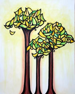 I started out as a writer, with two books published (on psychological astrology, which I also practise), as well as occasional poetry. For thirteen years I ran a smallholding in Aberdeenshire, and then worked for several years as a hands-on garden designer. So I came to painting a bit later in life, and I'm self-taught - as much by design as default: I just love experimenting and discovering my own techniques. Painting to me is a challenge, a journey, and each work seems to proceed along its own path, often taking me by surprise.